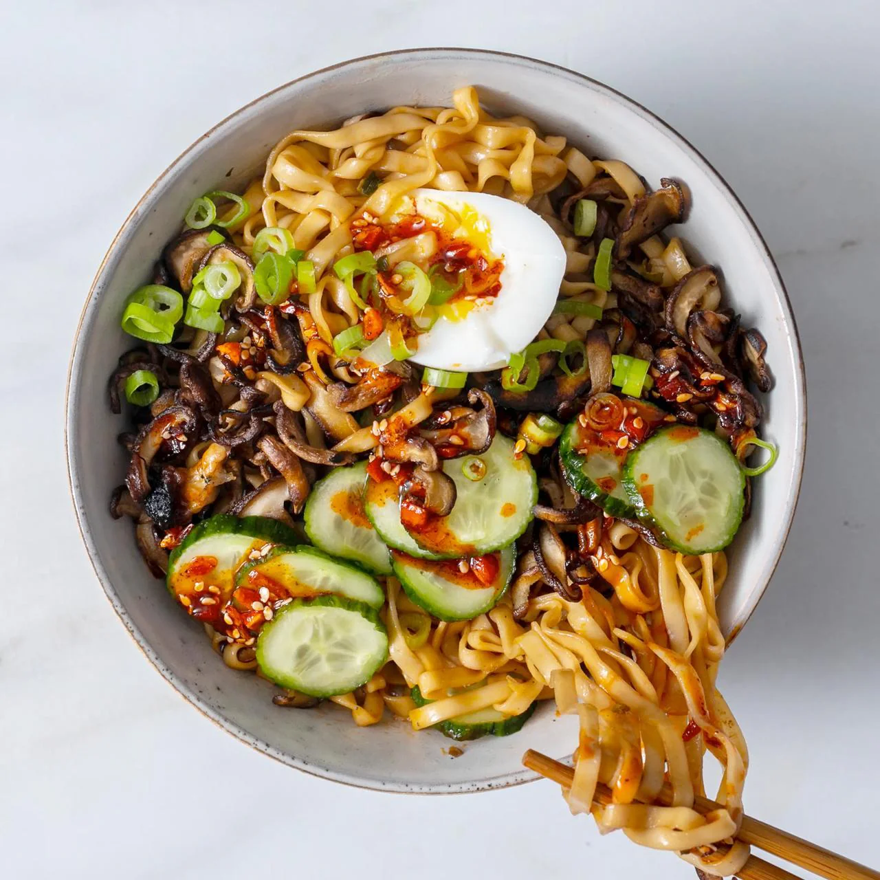 Spicy Soy noodles come with a punchy sauce made from soy sauce, chili, and sesame oil. It creates the perfect balance of savory and spicy flavors.